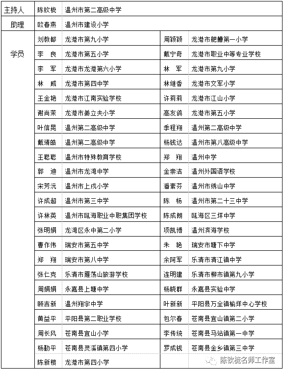 附:浙江省、温州市陈钦梳名师工作室(2021级)成员名单