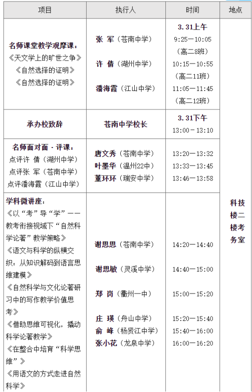 为了充分发挥名师工作室的引领和辐射作用,提升学科课堂品质,拓展新课程理念,温州市朱伟名师工作室联合浙江省徐桦君名师网络工作室、浙江省黄丽君名师网络工作室举办“新高考视域下的高品质课堂研讨”活动,现将有关事项通知如下。