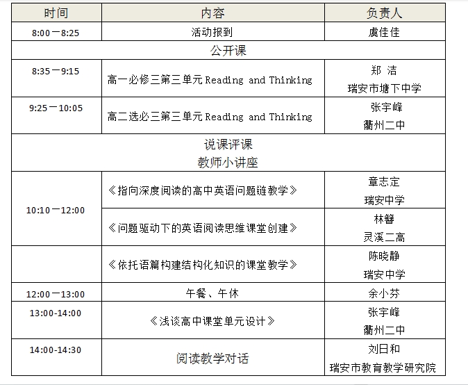 为进一步深化普通高中英语课程改革,研究新教材背景下英语学科核心素养落地的途径与策略,提高教育教学质量,发挥名师工作室的示范引领作用,提高教师课堂教学能力,现举办温州市陈晓静“名师送教”工作室第六次研修活动。具体事项通知如下: