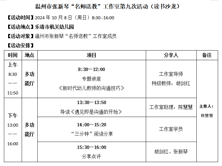 关于举行温州市张新琴“名师送教”工作室第9次活动的通知